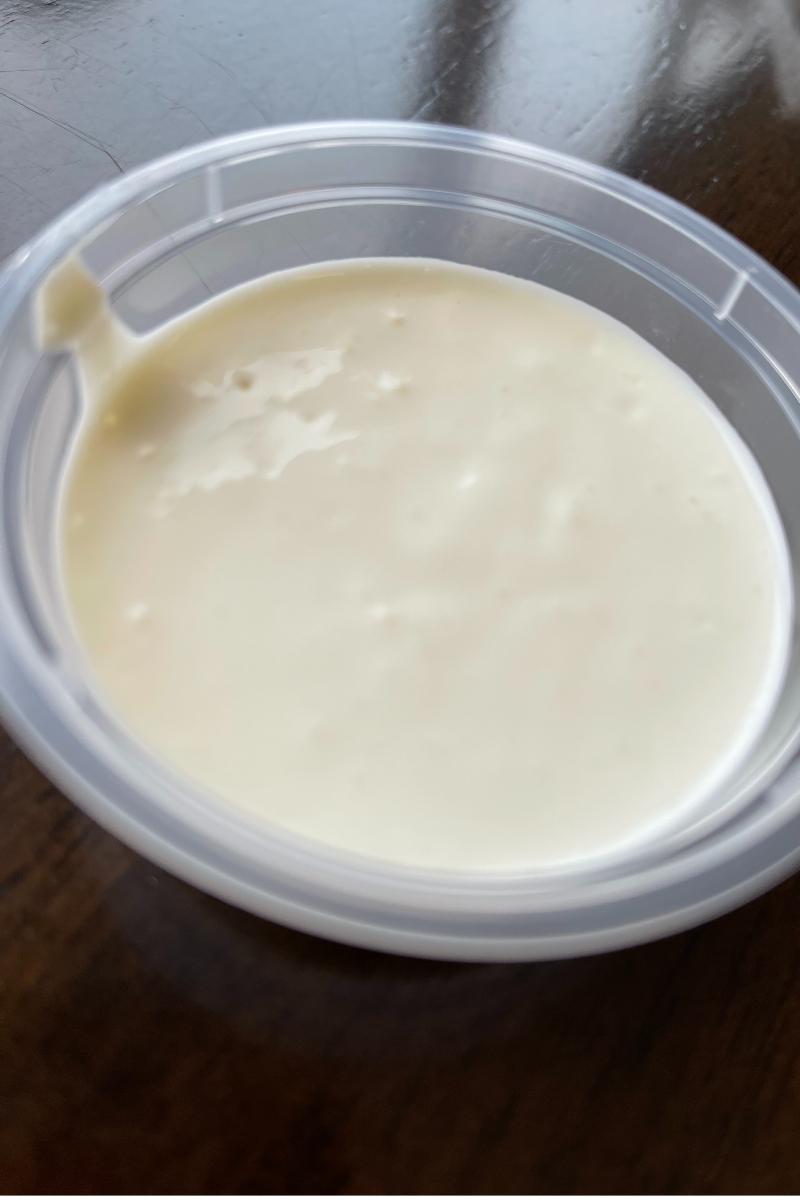 Denne dressingen er laget av majones, rømme, ferskrevet hvitløk og rosmarin olje. Fantastisk god og et godt kick av hvitløk.